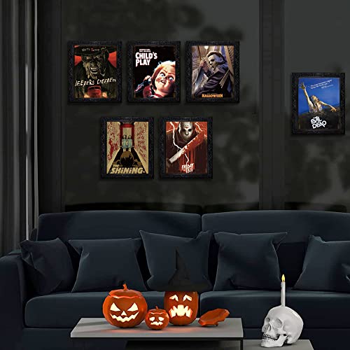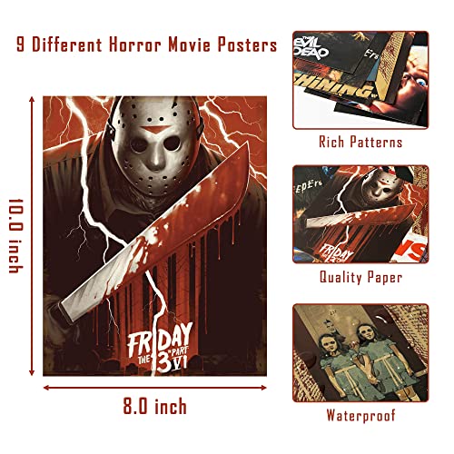 D2ucco Set di 9 poster con personaggi classici del film horror, stampe artistiche da parete vintage, stampa con personaggi spaventosi, per feste di Halloween, casa infestata, casa, soggiorno, camera