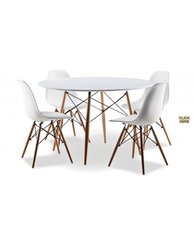 Dabudae Home SDM, Tavolo TOWER (HT), legno, laccato bianco, diametro 120 cm, Tavolo di design, base in legno, piano laccato bianco. Sedie e poltrone abbinate