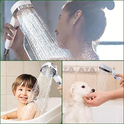 【Doccia ad alta pressione con 4 modalità di getto】 con il pulsante speciale sulla doccetta, puoi passare facilmente tra 4 modalità di getto. Modalità massaggio, pioggia, nebbia e pulizia ad alta pressione, c'è sempre una modalità che è la scelta migliore per te e la tua famiglia. Doccia sovralimentata, portati una doccia diversa, rilassa il tuo corpo e stai lontano dalla fatica