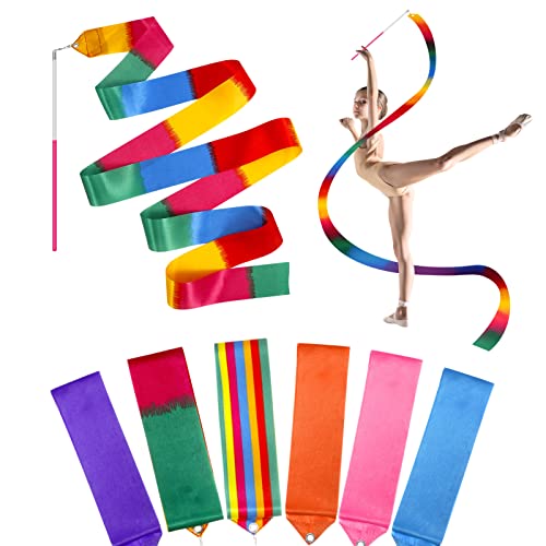 Dacitiery Set di 6 fasce da danza con asta, fascia per lo slancio per bambini, ragazze, balletto, balli artistici (2 m, 6 colori)