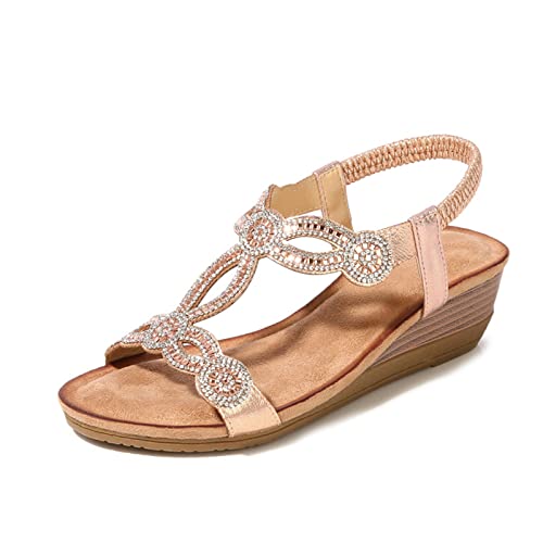 Dacomfy Sandali donna Sandali da donna con strass sandali gioiello donna bassi Sandali eleganti in gomma per scarpe da spiaggia casual da donna in stile boemo
