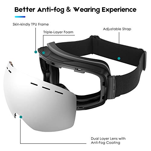 DADA-PRO Occhiali da Sci, Occhiali da Snowboard Uomo Donna Sopra Occhiali OTG Anti Fog Frameless Jet Snow, Occhiali da Sole con Protezione UV (Argento)