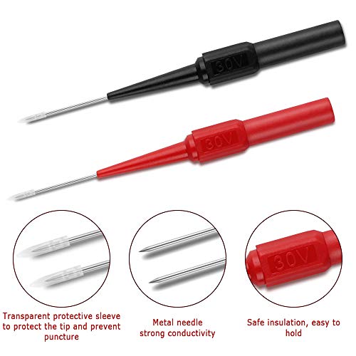 Misurazione accurata: la punta della testa di sonda per multimetro è estremamente sottile ed estremamente dura, facile da forare la guaina del cavo per i test senza tagliare la guaina del cavo, può non solo test non distruttivi del cavo, ma può anche estendersi nella spina per testare, garantendo l'accuratezza della misurazione.