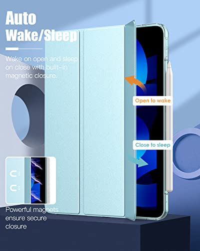 Dadanism Custodia sottile per iPad Air 5/4a generazione 2022/2020, con supporto per matite per iPad Air 5/4 da 10,9", supporto magnetico ricarica e sveglia automatica, Sleep&Touch ID, azzurro cielo