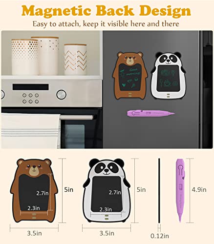 Dadanism 2Pz Lavagne Magnetiche Cancellabili con un Pennarello a Batteria, Lavagna Magnetica Frigorifero 6,9 x 5,8 cm Lavagnette Promemoria Piccole Lavagna Cucina Organizer Memo Carino, Orso&Panda