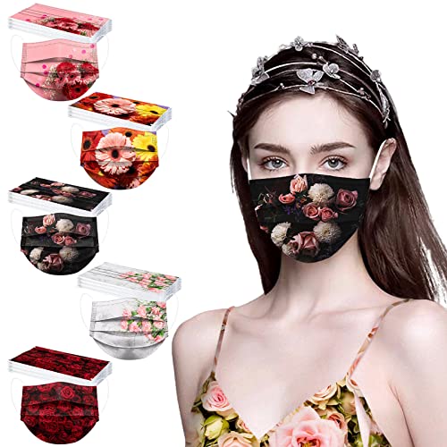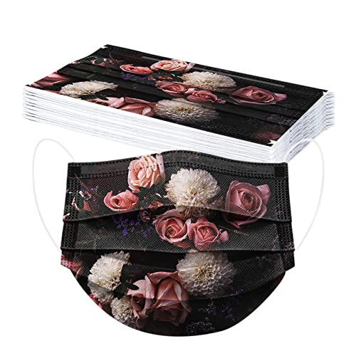 DADFF 50 pezzi, tessuto stampato alla moda, multicolore, 3 strati antipolvere, visiera bocca viso usa e getta, comfort per uomini e donne, traspirante, elastico per le orecchie, A16, Taglia unica