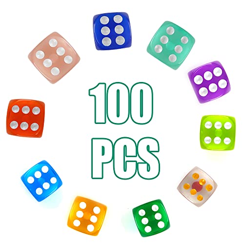 Set di 100 Dadi Acrilici Trasparenti a 6 Facce in 10 Colori Diversi da 16mm Con Sacchetto di Velluto Gratuito per Giochi di Ruolo Come Tenzi, Yahtze, Bunco, Giochi da Tavolo e Lezioni di Matematica