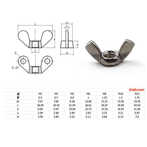 Dadi ad alette M5 in acciaio inox 304 con filettatura a mano (confezione da 50)