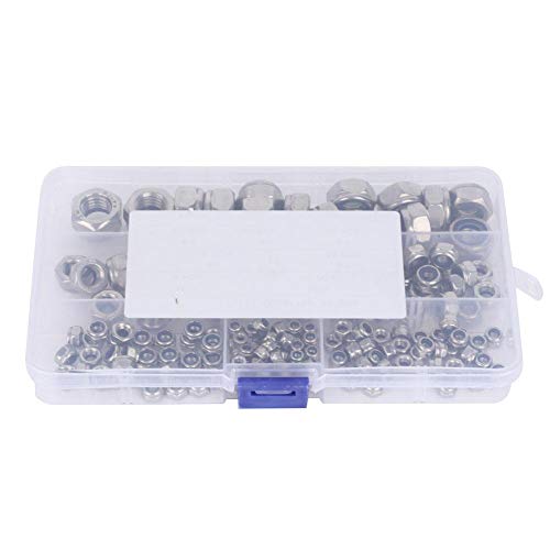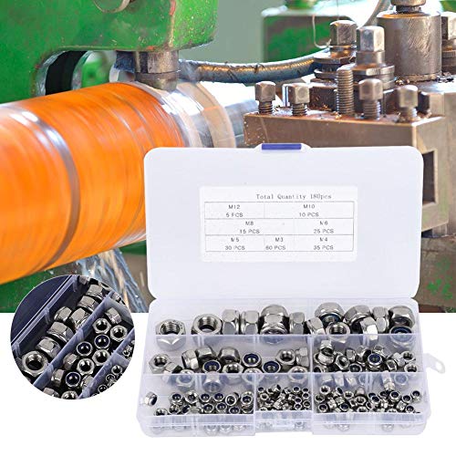 Set di dadi autobloccanti esagonali, dadi autobloccanti in acciaio inossidabile 304 M3 M4 M5 M6 M8 M10 M12 Kit di fissaggio dadi esagonali, kit assortimento dadi esagonali(180pcs)