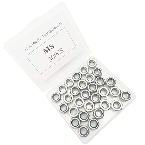 30 dadi di bloccaggio in nylon A2-70, dadi di bloccaggio in nylon in acciaio inox per uso generico, M8 confezionati in una scatola di imballaggio durevole (M8 30 pezzi)