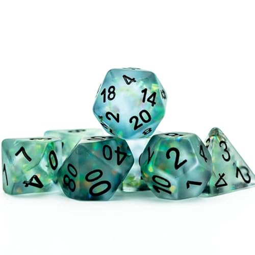 Un set accattivante di dadi adatto a tutti i giochi di ruolo da tavolo, ogni dado ha fiocchi riflettenti mescolati nella sua resina opaca che cattura la luce mentre rotola, aggiungendo un tocco magico che anche i più corrotti degli stregoni potrebbero apprezzare.