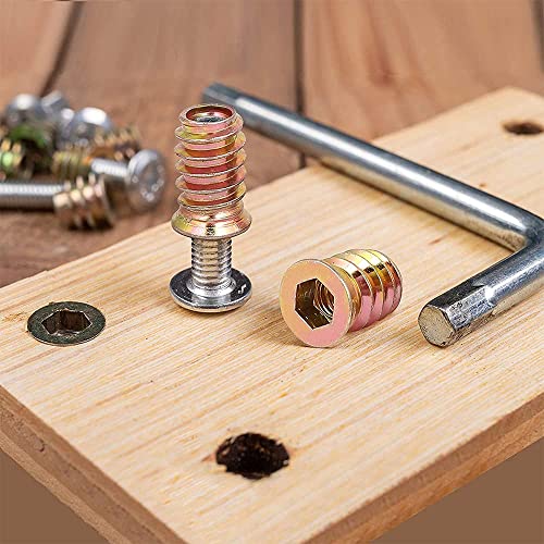 Set di 50 dadi filettati a esagono incassato M6 M8, in lega di zinco, per mobili, dado esagonale, inserto in legno, assortimento di dadi M6 x 10 mm (oro, M6 x 10)