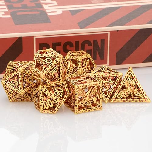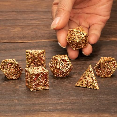 Set di dadi DND in metallo Dungeons and Dragons Dadi KERWELLSI 7pcs RPG Gioco di ruolo D&D Dadi Set D20 D12 D10 D8 D6 D4 Unico D+D Hollow Polyhedral Dadi Set con scatola per MTG Pathfinder Warhammer