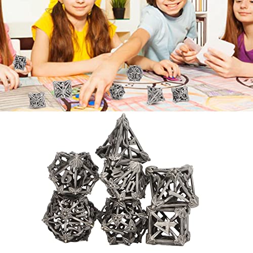 Set di Dadi in Metallo, 7 Pezzi Dadi Poliedrici Cavi Dungeons And Dragons Dadi Insegnamento di Matematica Set di Dadi di D&D, Adatto per Giochi di Ruolo di Ruolo Dungeons And Dragons(Grigio Argento)