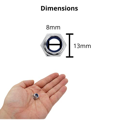 Dadi M8 Nyloc in acciaio, dadi autobloccanti da 8 mm con inserti in nylon (confezione da 20)