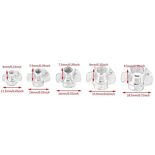 Kit Dadi a T da 100 Pezzi, Dado a 4 Punte a Scelta da M3 M4 M5 M6 M8 per Mobili della Lavorazione del Legno (M6)