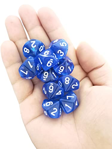 D10 Dadi,10 Pezzi Poliedrici Trasparenti Dadi con 10 Facce per DND MTG Rpg Dungeons And Dragons 20mm Blu Trasparente