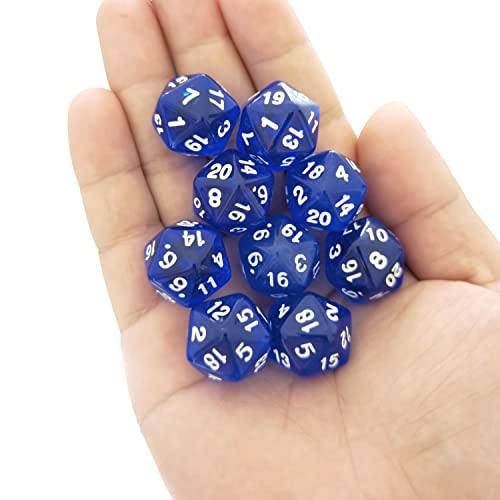 D20 Dadi, 10 Pezzi Poliedrici Trasparenti Dadi con 20 Facce per DND MTG Rpg Dungeons And Dragons Blu Trasparente