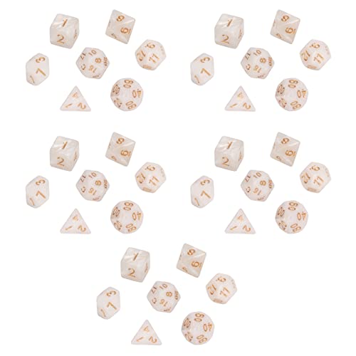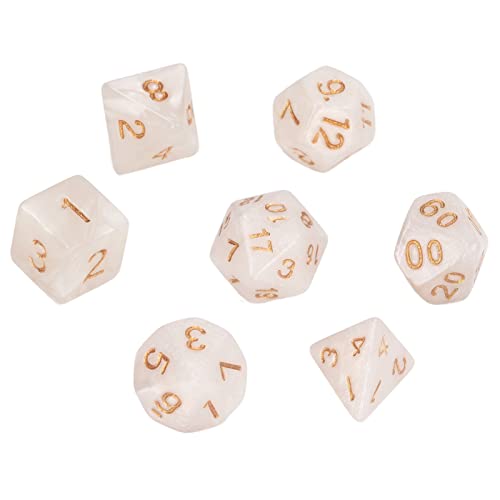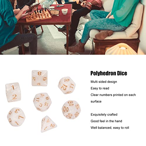 Set di Dadi Poliedrici, Set di Dadi a più Lati Set di Dadi di Perle con Numero d'oro per Materiale Scolastico (Bianco)