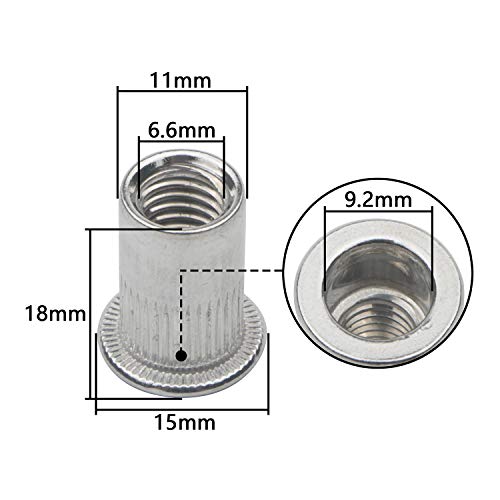 Set di 100 dadi per rivetti in alluminio a testa piatta