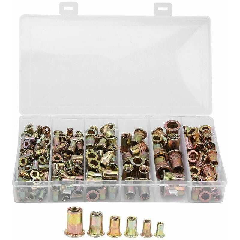 I dadi hanno una superficie indurita che fornisce filettature portanti ad alta resistenza. Il dado è squisito nella lavorazione e chiaro nella filettatura. Tutti i dadi per rivetti sono realizzati in acciaio al carbonio, con superficie zincata, anticorrosione e antiacido, sono resistenti e durevoli, non preoccuparti più che si arrugginiscano e si rompano durante l'installazione. Adatto per l'area di fissaggio di varie lamiere e tubi metallici e altre industrie manifatturiere. Ampiamente usato nell'edilizia, nel settore automobilistico e in altri elettrodomestici e prodotti di arredamento. Ampiamente utilizzato nell'assemblaggio di prodotti elettromeccanici e dell'industria leggera come automobili, ascensori, interruttori, strumenti, mobili e decorazioni. Tutti i rivetti sono collocati in una scatola resistente e robusta per la custodia per evitare perdite. La scatola ti consente di trovare rapidamente il tipo di rivetto di cui hai bisogno. Specifica: Condizione: 100% nuovo di zecca