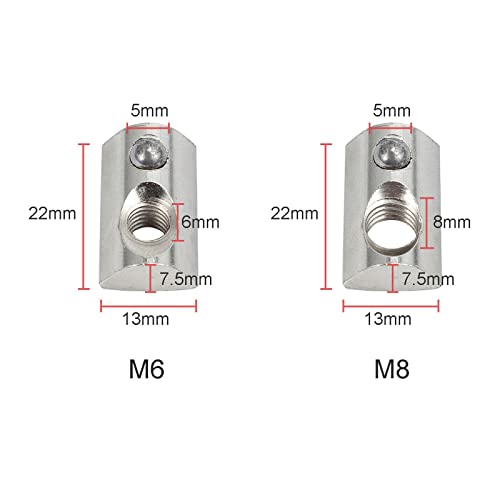100 dadi scanalati a T M6 M8, dadi scorrevoli, scanalatura 6, scanalatura 8 europei, dado a T con sfera, in acciaio al carbonio, dado a T per profilo in alluminio (M6)