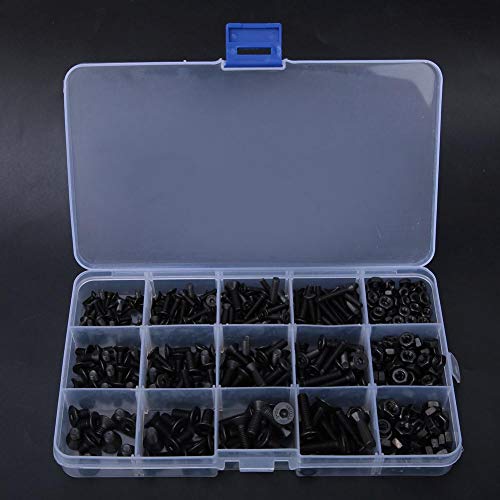 Set di dadi a vite, assortimento di dadi a vite 460pcs M3/M4/M5 bullone a brugola kit dado esagonale in acciaio al carbonio a testa piatta nera, bulloni esagonali set di dadi a dado