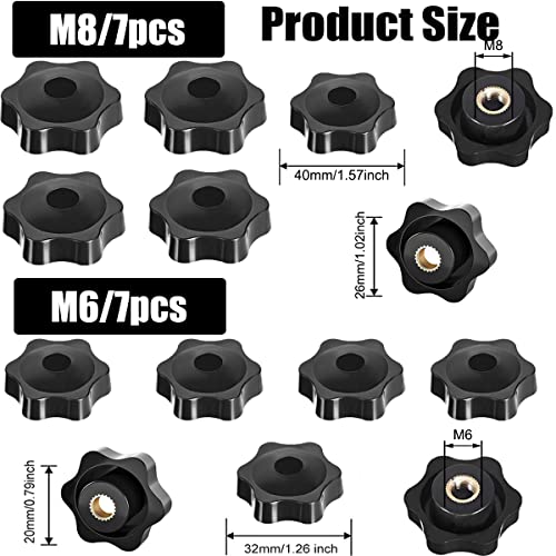 Dado Di Serraggio Nero, Viti a Stella, Filettature Interne In Plastica, Dadi a Stella m8 e m6, Viti Adatte Al Fissaggio Di Macchine Utensili, Macchinari e Attrezzature, 14 Pezzi.