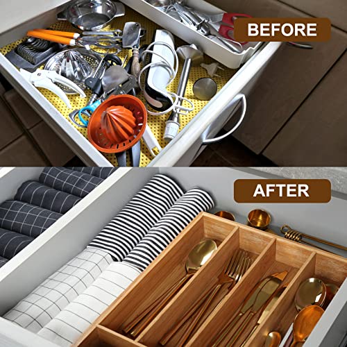 【Ampiamente usato】: l'organizer per posate in bambù può essere utilizzato come portaoggetti per cassetti da cucina, organizer per cassetti da ufficio, organizer per cassettiere, porta accessori per capelli. Ideale per conservare argenteria, posate, cancelleria, gioielli, kit da cucito, spezie per il tè, cosmetici.