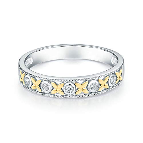 Daesar Anelli Oro Bianco Fidanzamento 18K, Anello Donna e Uomo Anello con Diamante Donna 0.05ct Fiori Anello Oro Bianco Fidanzamento Misura 27