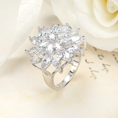Daesar Anello Di Fidanzamento Donna, Anello In Oro Bianco Donna 18K Placcato Fiori Bianco Marquise Anelli Zirconi Anelli Misura 12