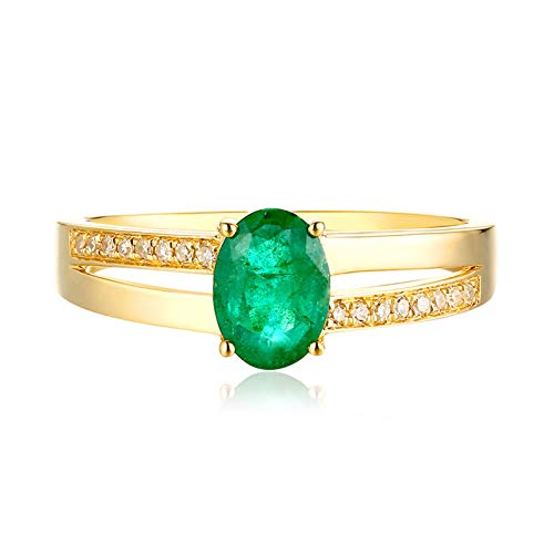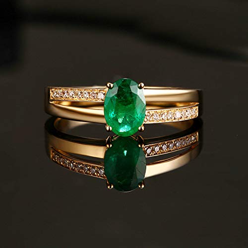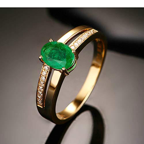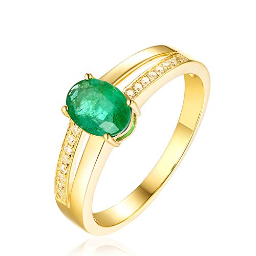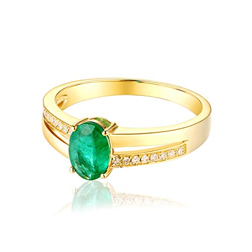 Daesar Anello in Oro Giallo 18 K Anelli Donna Fidanzamento 0.56ct Smeraldo Verde Ovale Anello Donna Fidanzamento Diamante Anelli Donna Oro Matrimonio Misura 13