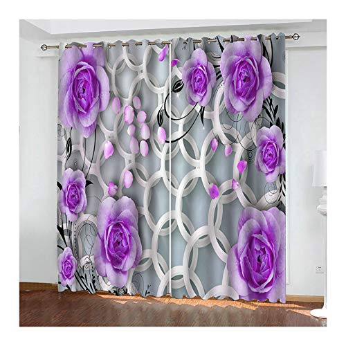 Daesar Tenda da Salotto 2 Pezzi Tenda Oscuranti Finestra Fiori Tende Camera Viola 107x183CM Tende in Poliestere