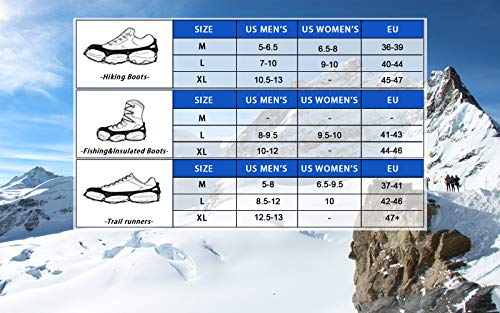 DAFENP Ramponi per Scarponi con 19 Denti Catene in Acciaio Inossidabile Antiscivolo Spikes Neve Ramponi Ghiaccio Portabile Trekking Escursionismo Camping Moutaineering Winter BZ0061-Black-XL