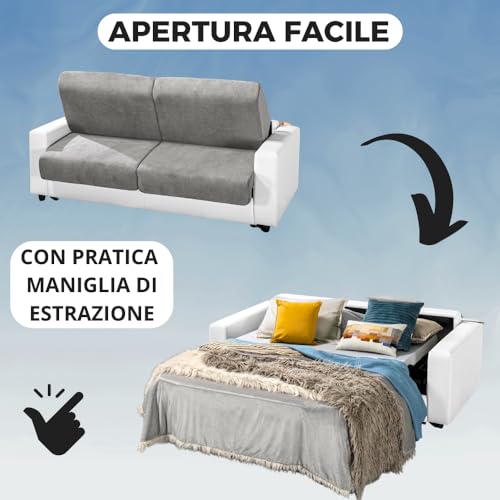 Dafne Italian Design - Divano Letto 3 Posti (204x95x90 cm) Divano Letto Matrimoniale a Ribalta, Divano Letto 3 Posti con Materasso, Divano 3 Posti, Letto Divano Made in Italy