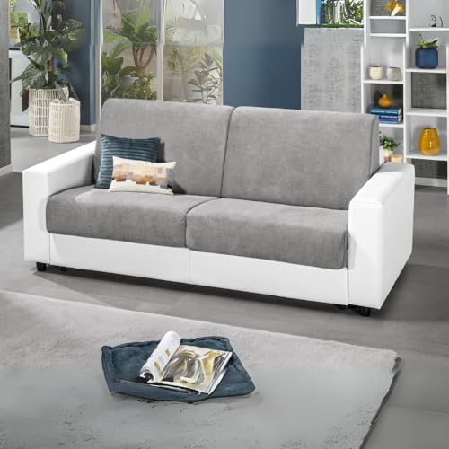 MATERIALI DI QUALITA': Realizzato con Similpelle Bianca & Tessuto Grigio Chiaro di alta qualità, questo divano letto presenta un'estetica accattivante e resistente, garantendo una durata nel tempo senza compromessi