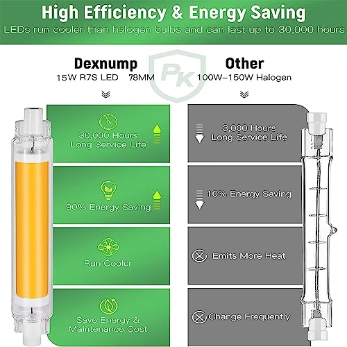 [Risparmio Energetico fino all'90%]: Lampadina lineare LED 78mm, Il consumo di energia è 1/10 della lampadina a incandescenza, 15W led r7s 78mm, 100w,150w J-Type lineare alogena / lampadina a incandescenza sostituzione. Goditi il risparmio energetico dei LED senza sacrificare la qualità della luce,bassa frequenza di sostituzione.