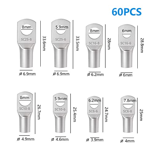 DAGORD 60 Pz Capicorda Elettrici Terminali Occhiello Crimpare Terminali Eettrici in Rame Set Capicorda Elettrici Occhiello Connettori Anello Terminali In Rame Capicorda Batteria