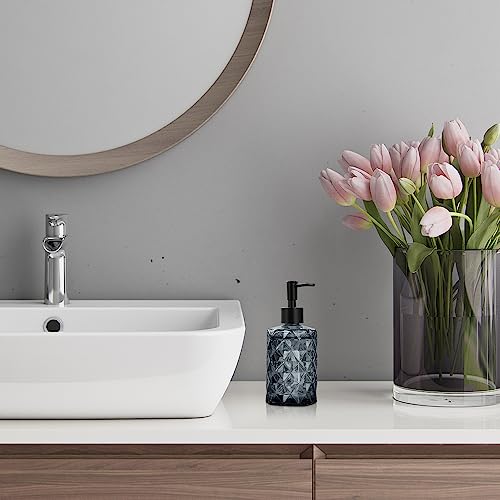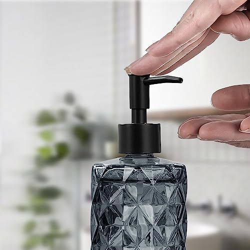 DAGORD Dispenser di Sapone in Vetro 330ml Set di Dispenser di Sapone in Vetro Dispenser Sapone Vetro Nero Dispenser Sapone Vintage + Imbuto in Acciaio Inox per il Bagno e Detersivo Per La Cucina
