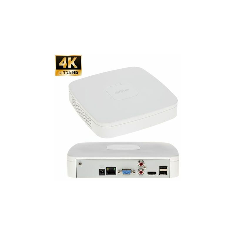 Dahua NVR registratore IP 4 canali fino a 8 MP - NVR4104-4KS2 NVR 4CH H.265+/H.265/Smart+/H.264 Larghezza di banda massima in entrata di 80Mbps. Risoluzione fino a 8 MP per anteprima e riproduzione Decodifica fino a 2 CH @4K/8CH@1080P Uscita video simultanea HDMI/VGA IVS (Tripwire-Intrusion-People Counting- Heat Map) Supporto IPC UPnP 1 RJ-45 (10/100Mbps) HDD sata III porte Max 6TB Alimentatore DC12V/25A DIMENSIONI: 204.6mm×204.6mm×45.6mm PESO: Kg 0.45 Cosa comprende l'offerta: nr. 01 Dahua NVR registratore IP 4 canali fino a 8 MP - NVR4104-4KS2 istruzioni in italiano Garanzia anni 2