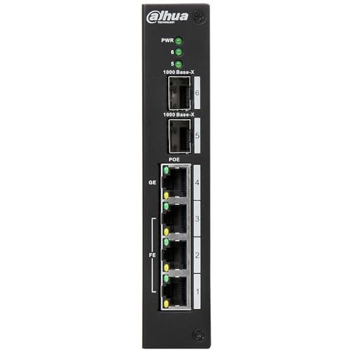 dahua pfs4206-4p-120 switch rango temp extendida poe 3 puertos 10/100 + 1 puerto gigabit + 2sfp 120w 802.3at manejable layer 2