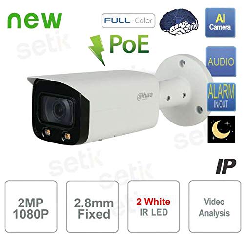 Dahua - Telecamera AI IP ONVIF PoE 2MP 2.8mm Full-Color Starlight White Led Dahua - IPC-HFW5241T-AS-LED