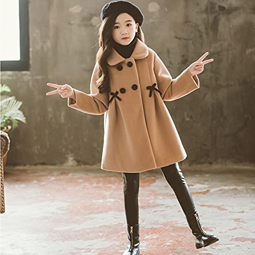 DAIHAN Cappotto di Lana Ragazze Invernale, Cappotti Principessa Caldo Leggero Antivento Trench Giacche Lungo Giacca Bambina Cappotto Elegante Giubbino Capispalla,Cachi,140