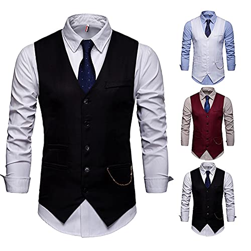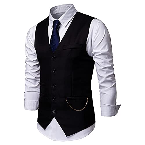DAIHAN Gilet Uomo Slim Fit Tempo Libero Elegante Cerimonia Matrimonio Senza Maniche Sottile Gilet Giacca Casual Smanicato Scollo A V Panciotto,Nero,XXL