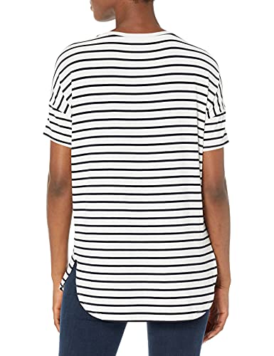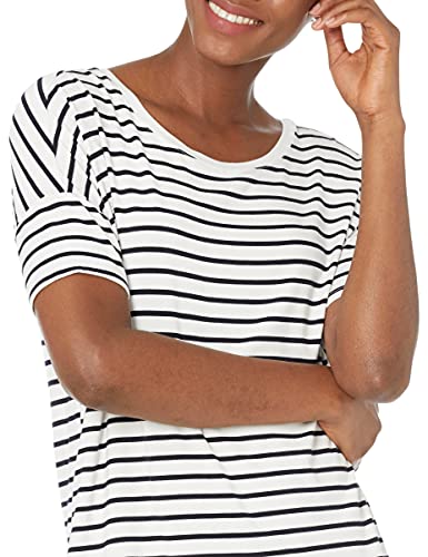 Daily Ritual Tunica con Scollo Rotondo e Spalle Scivolate a Maniche Corte con vestibilità Comoda in Jersey Donna, Bianco/Blu Marino, Righe, S