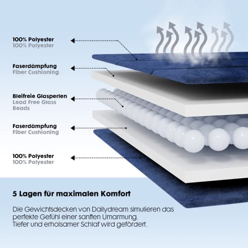 SONNO SICURO SICURO: senti il relax, mettiti comodo nel tuo letto o sul divano e goditi la piacevole sensazione di sicurezza. Prodotti secondo lo standard Öko-Tex-100, i tessuti utilizzati nelle coperte ponderate Dailydream soddisfano i più elevati standard di sicurezza e ambientali e sono quindi adatti anche a chi soffre di allergie.