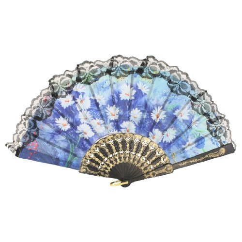 Daisy Flower Print Nylon Sezione pizzo cornice assettato pieghevole Fan Nero