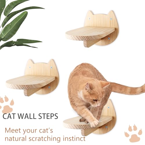 DaizySight Set di 3 ripiani da parete per gatti, per arrampicata, scala a parete, per albero di gatto, in legno, per mobili a forma di gatto, confezione da 3