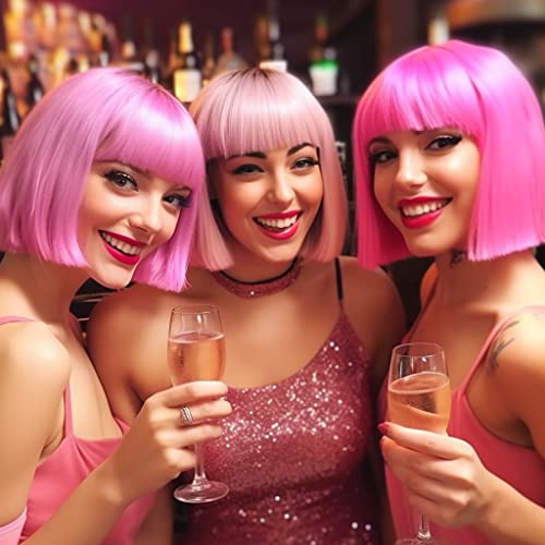 DAJOOEE Confezione da 9 Parrucche Bob Colorate, 30,5 cm dritte con Frangia Piatta, Parrucche per Feste, Parrucche per Feste Nuziali, con Occhiali da Sole a Cuore Extra