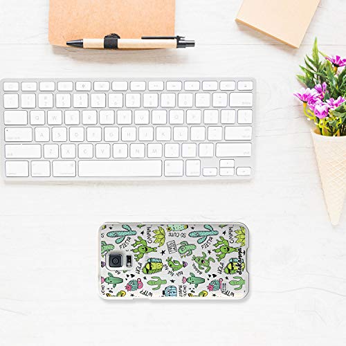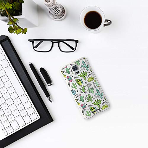 Dakanna Custodia Compatibili con [Samsung Galaxy S5 - S5 Neo] Sfondo Trasparente con Disegni [Modello Divertente di Cactus e Frasi] in Morbida Silicone TPU Flessibile, Shell Case Cover in Gel